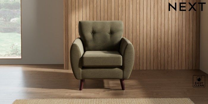 7.3.1 Buy Wilson Buttoned Back Armchair Fine Chenille Easy Clean Dark Moss Green Retro Tapered - Dark Brown from the Seasons online shop Click here to use our website with more accessibility support, for example screen readers