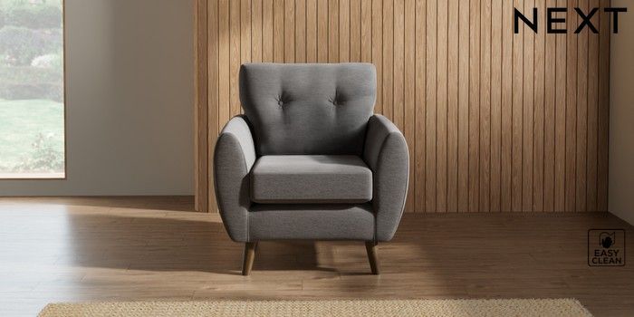 7.3.1 Buy Wilson Buttoned Back Armchair Fine Chenille Easy Clean Dark Smoke Grey Retro Tapered - Mid from the Seasons online shop Click here to use our website with more accessibility support, for example screen readers