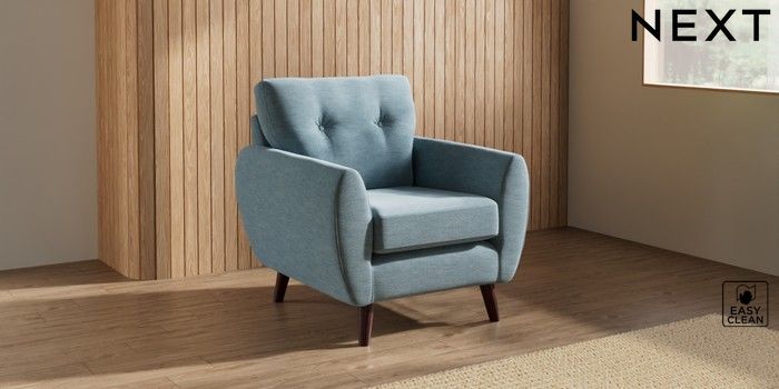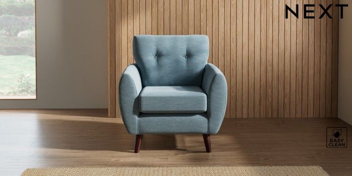 7.3.1 Buy Wilson Buttoned Back Armchair Fine Chenille Easy Clean Mid Blue Retro Tapered - Dark Brown from the Seasons online shop Click here to use our website with more accessibility support, for example screen readers
