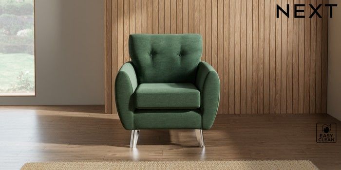 7.3.1 Buy Wilson Buttoned Back Armchair Fine Chenille Easy Clean Mid Khaki Green Metal Tapered - Chrome from the Seasons online shop Click here to use our website with more accessibility support, for example screen readers