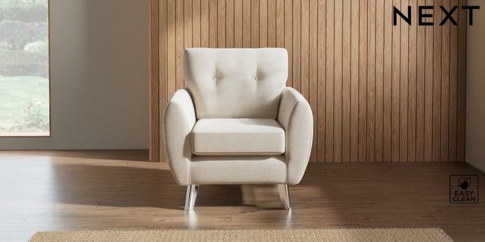 7.3.1 Buy Wilson Buttoned Back Armchair Fine Chenille Easy Clean Oyster Metal Tapered - Chrome from the Seasons online shop Click here to use our website with more accessibility support, for example screen readers