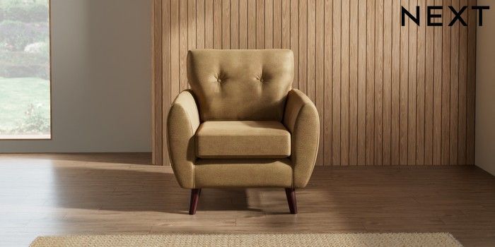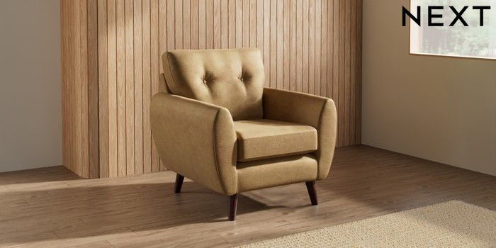 7.3.1 Buy Wilson Buttoned Back Armchair Luxe Chenille Honey Yellow Retro Tapered - Dark Brown from the Seasons online shop Click here to use our website with more accessibility support, for example screen readers