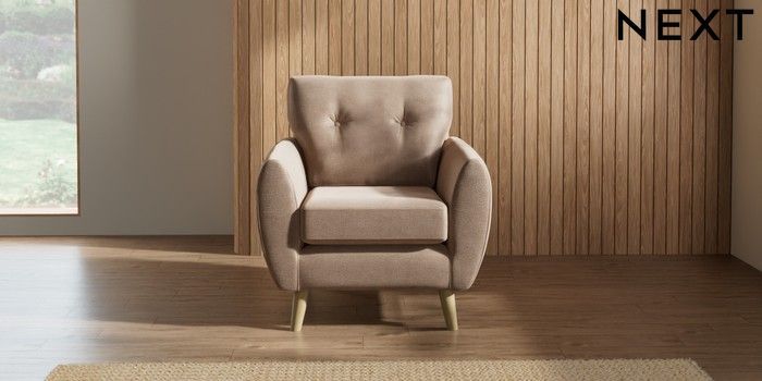 7.3.1 Buy Wilson Buttoned Back Armchair Luxe Chenille Mid Natural Retro Tapered - Light from the Seasons online shop Click here to use our website with more accessibility support, for example screen readers