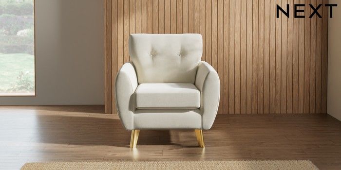 7.3.1 Buy Wilson Buttoned Back Armchair Luxe Chenille Oyster Metal Tapered - Gold from the Seasons online shop Click here to use our website with more accessibility support, for example screen readers