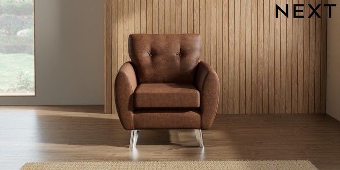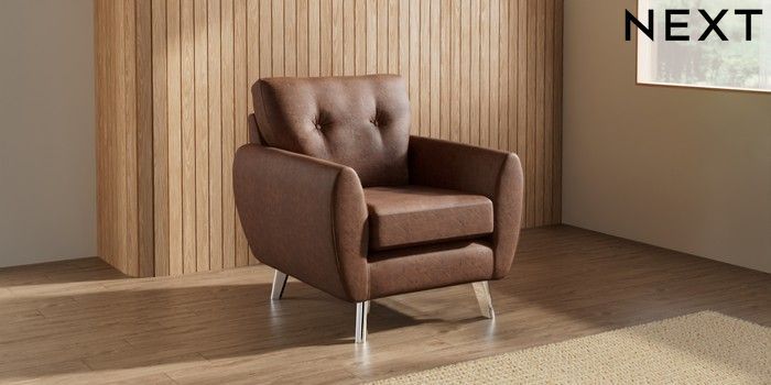 7.3.1 Buy Wilson Buttoned Back Armchair Monza Faux Leather Easy Clean Chestnut Brown Metal Tapered - Chrome from the Seasons online shop