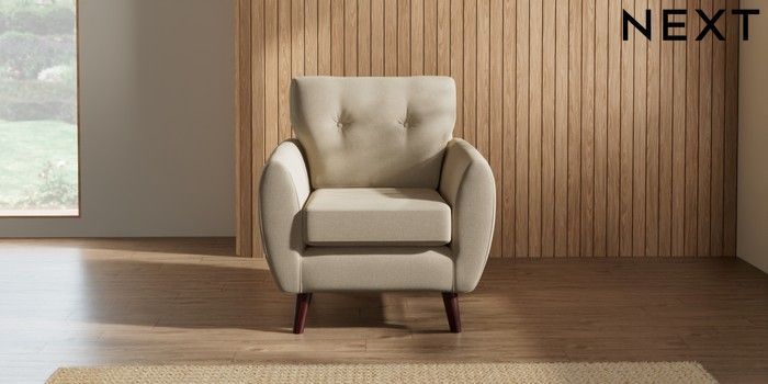 7.3.1 Buy Wilson Buttoned Back Armchair Natural Mix Light Natural Retro Tapered - Dark Brown from the Seasons online shop Click here to use our website with more accessibility support, for example screen readers