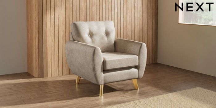 7.3.1 Buy Wilson Buttoned Back Armchair Plush Chenille Light Natural Metal Tapered - Gold from the Seasons online shop Click here to use our website with more accessibility support, for example screen readers