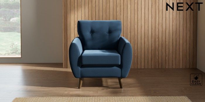 7.3.1 Buy Wilson Buttoned Back Armchair Plush Velvet Easy Clean Airforce Blue Retro Tapered - Mid from the Seasons online shop Click here to use our website with more accessibility support, for example screen readers