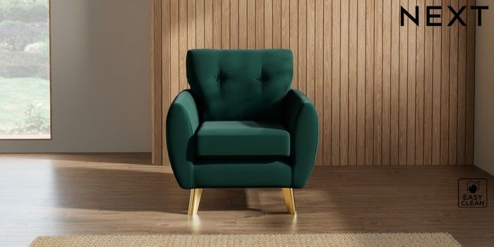 7.3.1 Buy Wilson Buttoned Back Armchair Plush Velvet Easy Clean Bottle Green Metal Tapered - Gold from the Seasons online shop