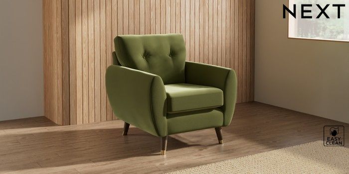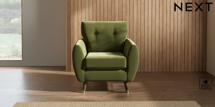 7.3.1 Buy Wilson Buttoned Back Armchair Plush Velvet Easy Clean Mid Olive Green Low Retro Tapered Metal Cap - Mid from the Seasons online shop