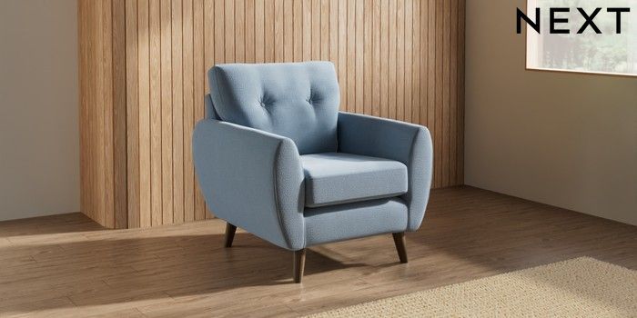 7.3.1 Buy Wilson Buttoned Back Armchair Relaxed Linen Look Mid Blue Retro Tapered - Mid from the Seasons online shop Click here to use our website with more accessibility support, for example screen readers