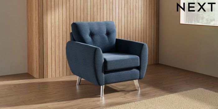 7.3.1 Buy Wilson Buttoned Back Armchair Ripple Chenille Dark Blue Metal Tapered - Chrome from the Seasons online shop Click here to use our website with more accessibility support, for example screen readers