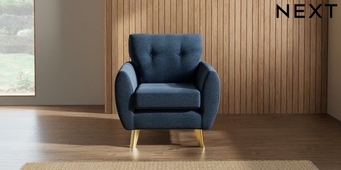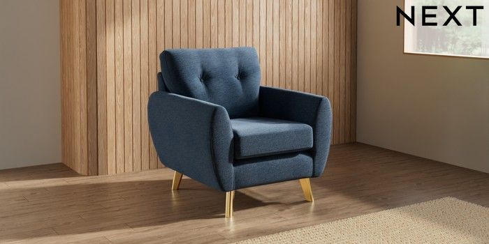 7.3.1 Buy Wilson Buttoned Back Armchair Ripple Chenille Dark Blue Metal Tapered - Gold from the Seasons online shop Click here to use our website with more accessibility support, for example screen readers