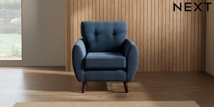 7.3.1 Buy Wilson Buttoned Back Armchair Ripple Chenille Dark Blue Retro Tapered - Dark Brown from the Seasons online shop Click here to use our website with more accessibility support, for example screen readers