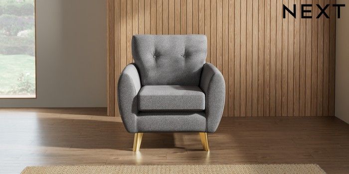 7.3.1 Buy Wilson Buttoned Back Armchair Studio Chenille Mid Grey Metal Tapered - Gold from the Seasons online shop Click here to use our website with more accessibility support, for example screen readers