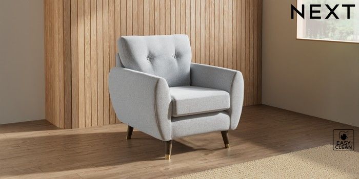 7.3.1 Buy Wilson Buttoned Back Armchair Tweedy Blend Easy Clean Light Silver Grey Low Retro Tapered Metal Cap - Mid from the Seasons online shop Click here to use our website with more accessibility support, for example screen readers