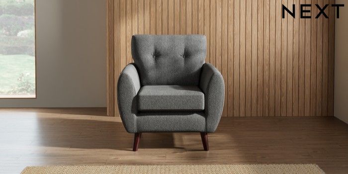 7.3.1 Buy Wilson Buttoned Back Armchair Tweedy Chenille Dark Grey Retro Tapered - Dark Brown from the Seasons online shop Click here to use our website with more accessibility support, for example screen readers