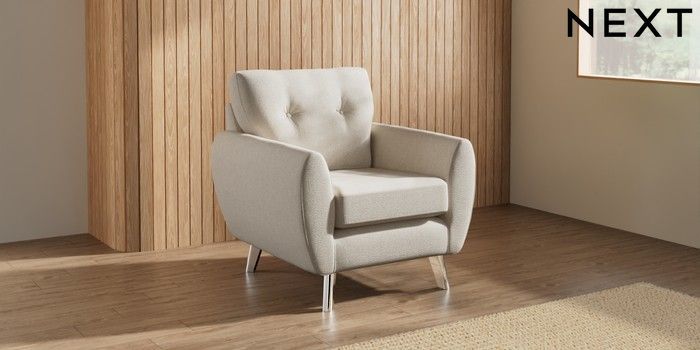 7.3.1 Buy Wilson Buttoned Back Armchair Tweedy Chenille Oyster Metal Tapered - Chrome from the Seasons online shop Click here to use our website with more accessibility support, for example screen readers