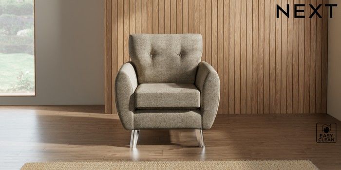 7.3.1 Buy Wilson Buttoned Back Armchair Woven Chenille Easy Clean Mid Natural Metal Tapered - Chrome from the Seasons online shop Click here to use our website with more accessibility support, for example screen readers