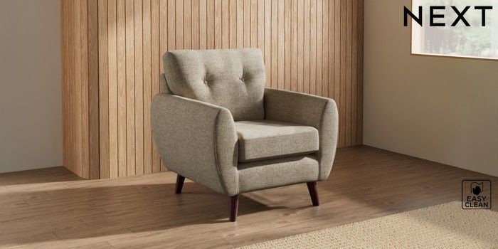 7.3.1 Buy Wilson Buttoned Back Armchair Woven Chenille Easy Clean Mid Natural Retro Tapered - Dark Brown from the Seasons online shop Click here to use our website with more accessibility support, for example screen readers