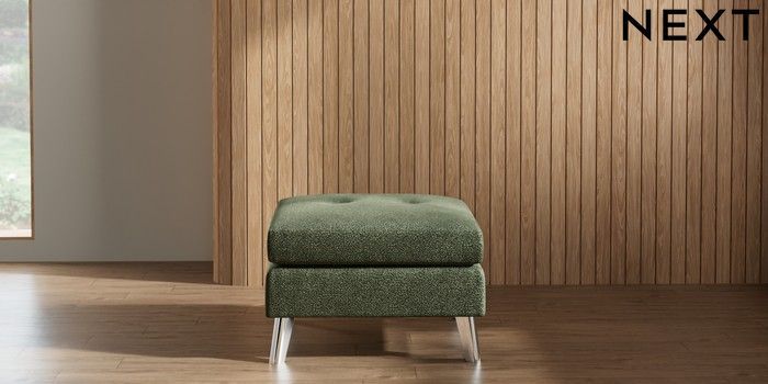 7.3.1 Buy Wilson Buttoned Back Footstool Boucle Chenille Dark Moss Green Metal Tapered - Chrome from the Seasons online shop Click here to use our website with more accessibility support, for example screen readers