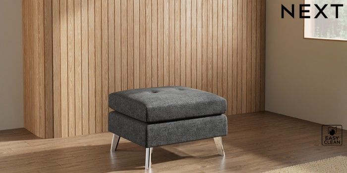 7.3.1 Buy Wilson Buttoned Back Footstool Boucle Weave Easy Clean Charcoal Grey Metal Tapered - Chrome from the Seasons online shop Click here to use our website with more accessibility support, for example screen readers