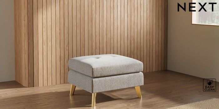 7.3.1 Buy Wilson Buttoned Back Footstool Chunky Boucle Easy Clean Dove Metal Tapered - Gold from the Seasons online shop Click here to use our website with more accessibility support, for example screen readers
