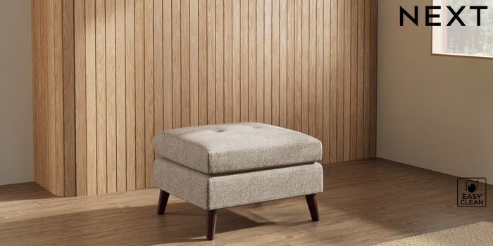 7.3.1 Buy Wilson Buttoned Back Footstool Chunky Boucle Easy Clean Mid Natural Retro Tapered - Dark Brown from the Seasons online shop Click here to use our website with more accessibility support, for example screen readers