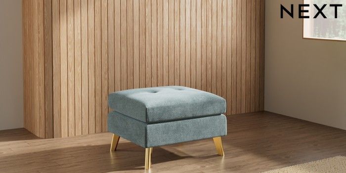7.3.1 Buy Wilson Buttoned Back Footstool Chunky Chenille Light Teal Green Metal Tapered - Gold from the Seasons online shop Click here to use our website with more accessibility support, for example screen readers