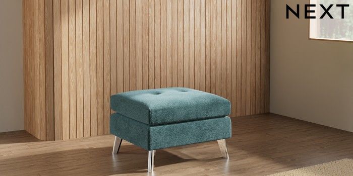 7.3.1 Buy Wilson Buttoned Back Footstool Chunky Chenille Mid Teal Green Metal Tapered - Chrome from the Seasons online shop Click here to use our website with more accessibility support, for example screen readers