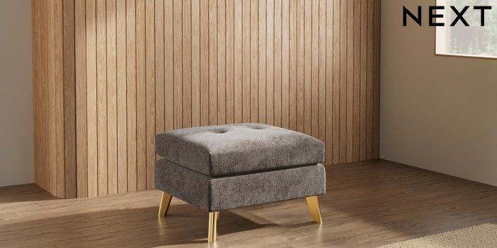 7.3.1 Buy Wilson Buttoned Back Footstool Chunky Chenille Mink Brown Metal Tapered - Gold from the Seasons online shop Click here to use our website with more accessibility support, for example screen readers
