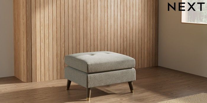 7.3.1 Buy Wilson Buttoned Back Footstool Chunky Marl Light Olive Green Low Retro Tapered Metal Cap - Mid from the Seasons online shop Click here to use our website with more accessibility support, for example screen readers