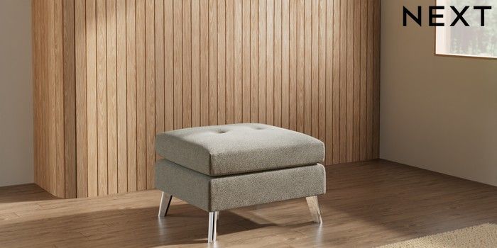 7.3.1 Buy Wilson Buttoned Back Footstool Chunky Marl Light Olive Green Metal Tapered - Chrome from the Seasons online shop Click here to use our website with more accessibility support, for example screen readers