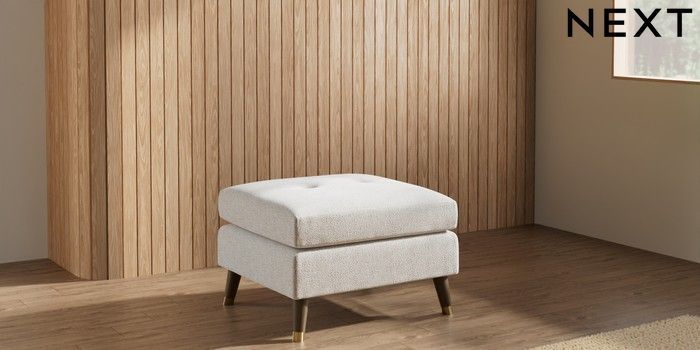 7.3.1 Buy Wilson Buttoned Back Footstool Chunky Marl Oyster Low Retro Tapered Metal Cap - Mid from the Seasons online shop Click here to use our website with more accessibility support, for example screen readers