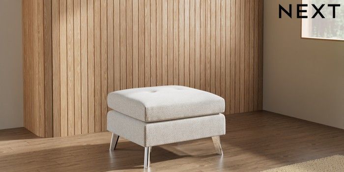 7.3.1 Buy Wilson Buttoned Back Footstool Chunky Marl Oyster Metal Tapered - Chrome from the Seasons online shop Click here to use our website with more accessibility support, for example screen readers