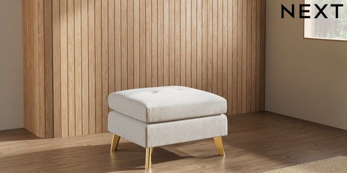 7.3.1 Buy Wilson Buttoned Back Footstool Chunky Marl Oyster Metal Tapered - Gold from the Seasons online shop Click here to use our website with more accessibility support, for example screen readers