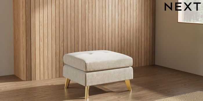 7.3.1 Buy Wilson Buttoned Back Footstool Chunky Weave Cream Metal Tapered - Gold from the Seasons online shop Click here to use our website with more accessibility support, for example screen readers