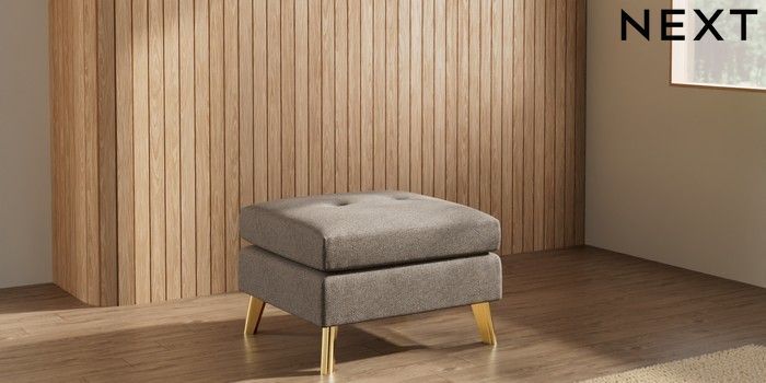 7.3.1 Buy Wilson Buttoned Back Footstool Chunky Weave Dark Natural Metal Tapered - Gold from the Seasons online shop Click here to use our website with more accessibility support, for example screen readers