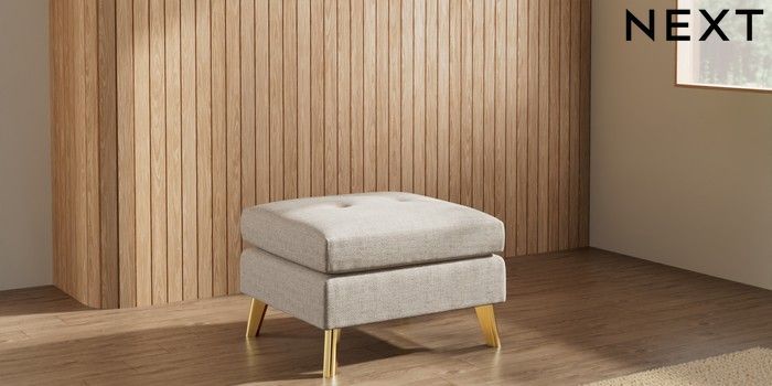 7.3.1 Buy Wilson Buttoned Back Footstool Chunky Weave Mid Natural Metal Tapered - Gold from the Seasons online shop Click here to use our website with more accessibility support, for example screen readers