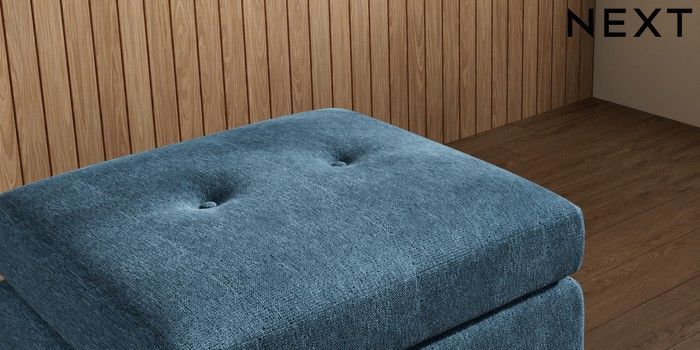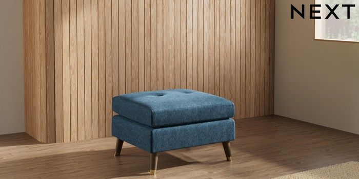7.3.1 Buy Wilson Buttoned Back Footstool Cotswold Chenille Dark Blue Low Retro Tapered Metal Cap - Mid from the Seasons online shop Click here to use our website with more accessibility support, for example screen readers