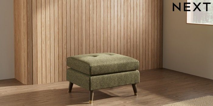 7.3.1 Buy Wilson Buttoned Back Footstool Cotswold Chenille Dark Green Low Retro Tapered Metal Cap - Mid from the Seasons online shop Click here to use our website with more accessibility support, for example screen readers