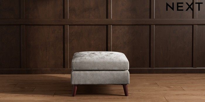 7.3.1 Buy Wilson Buttoned Back Footstool Distressed Velour French Grey Retro Tapered - Dark Brown from the Seasons online shop Click here to use our website with more accessibility support, for example screen readers