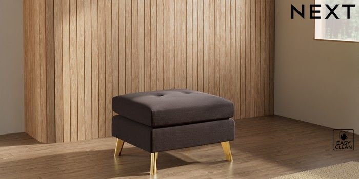 7.3.1 Buy Wilson Buttoned Back Footstool Fine Chenille Easy Clean Chocolate Brown Metal Tapered - Gold from the Seasons online shop Click here to use our website with more accessibility support, for example screen readers