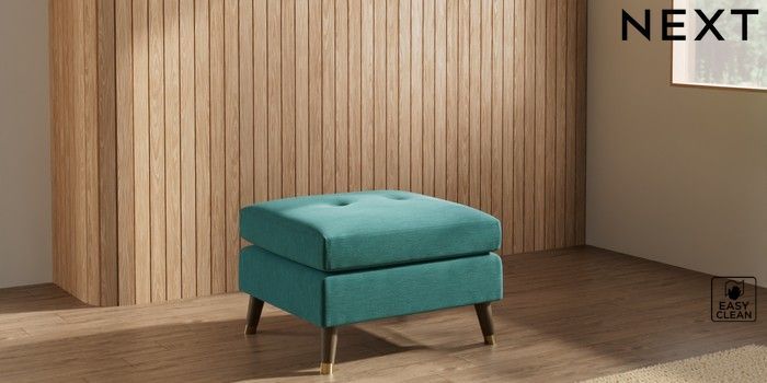 7.3.1 Buy Wilson Buttoned Back Footstool Fine Chenille Easy Clean Dark Juniper Green Low Retro Tapered Metal Cap - Mid from the Seasons online shop Click here to use our website with more accessibility support, for example screen readers