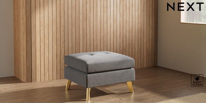 7.3.1 Buy Wilson Buttoned Back Footstool Fine Chenille Easy Clean Dark Smoke Grey Metal Tapered - Gold from the Seasons online shop Click here to use our website with more accessibility support, for example screen readers
