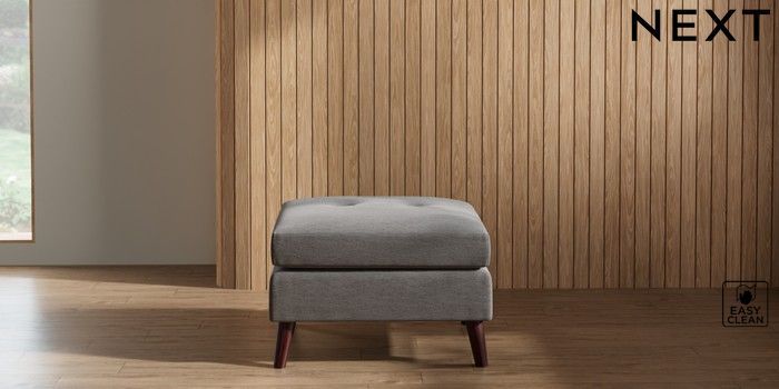 7.3.1 Buy Wilson Buttoned Back Footstool Fine Chenille Easy Clean Dark Smoke Grey Retro Tapered - Dark Brown from the Seasons online shop Click here to use our website with more accessibility support, for example screen readers