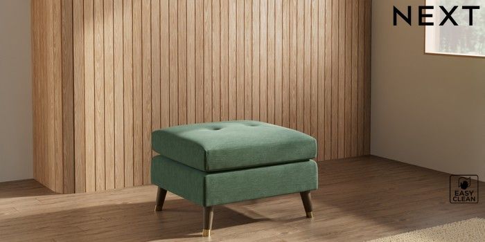 7.3.1 Buy Wilson Buttoned Back Footstool Fine Chenille Easy Clean Mid Khaki Green Low Retro Tapered Metal Cap - Mid from the Seasons online shop Click here to use our website with more accessibility support, for example screen readers