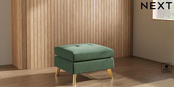 7.3.1 Buy Wilson Buttoned Back Footstool Fine Chenille Easy Clean Mid Khaki Green Metal Tapered - Gold from the Seasons online shop Click here to use our website with more accessibility support, for example screen readers