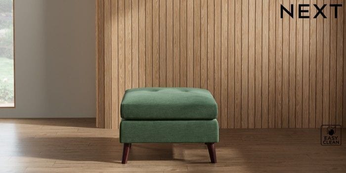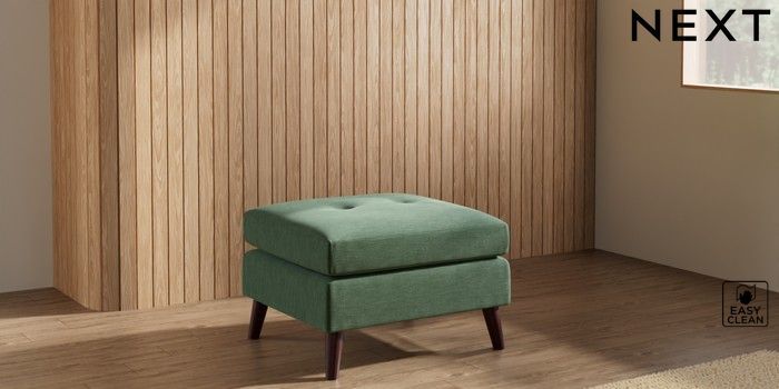 7.3.1 Buy Wilson Buttoned Back Footstool Fine Chenille Easy Clean Mid Khaki Green Retro Tapered - Dark Brown from the Seasons online shop Click here to use our website with more accessibility support, for example screen readers