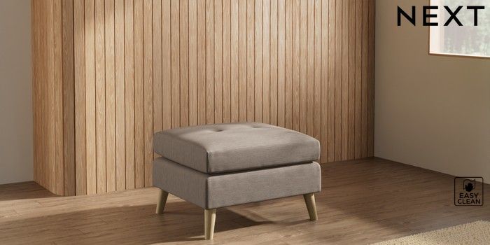 7.3.1 Buy Wilson Buttoned Back Footstool Fine Chenille Easy Clean Mid Taupe Brown Retro Tapered - Light from the Seasons online shop Click here to use our website with more accessibility support, for example screen readers